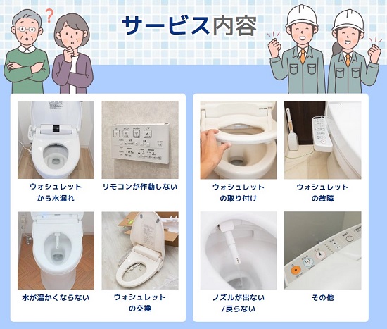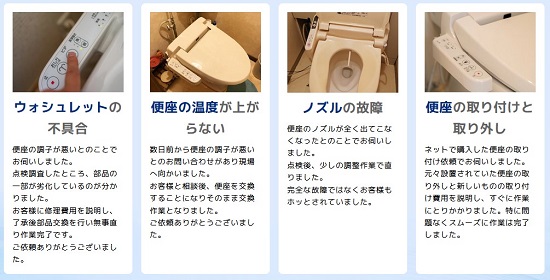 取手市で対応可能な温水便座、ウォシュレットの修理サービスとなります。その他のトラブルやご相談に関しましてはお気軽に受付窓口までお問い合わせください。